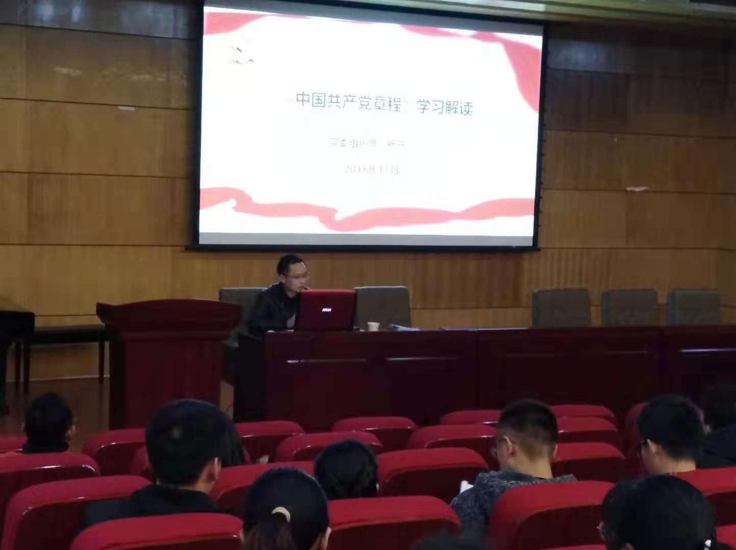 2018年11月17日下午,在调教漫画 报告厅,我校组织部副部长杨守鸿为调教漫画 入党积极分子讲党课,作了《中国共产党章程》学习解读报告。调教漫画 党委组织员曲卫红组织学院100余名入党积极分子参加。杨守鸿从中国共产党章程的历史沿革谈起,对新党章的各个章节进行了重点分析和解读。杨守鸿指出,党章是党的总章程,是党的总规范,是党的根本大法。党章是我们党全部活动的总章程,是每一名党员必须遵守的基本准则。认真学习新党章...