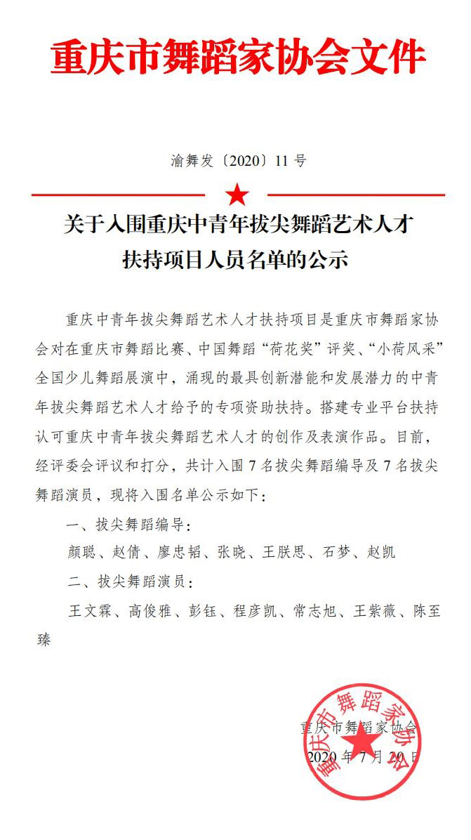 2020年7月,调教漫画 舞蹈系赵倩、张晓、王朕思、赵凯四位教师在“重庆市中青年拔尖舞蹈人才扶持”项目中喜获“拔尖舞蹈编导”称号。舞蹈系10级优秀毕业生陈至臻也获得“拔尖舞蹈表演人才”称号。此次重庆市中青年拔尖舞蹈艺术人才扶持项目是由重庆市舞蹈家协会主办,面向全市各基层文联、舞协、各级文艺组织,有关高校和社会单位及个人,选取最具创新潜能和发展潜力的中青年拔尖舞蹈创作人才及舞蹈表演人才给予的专项资...