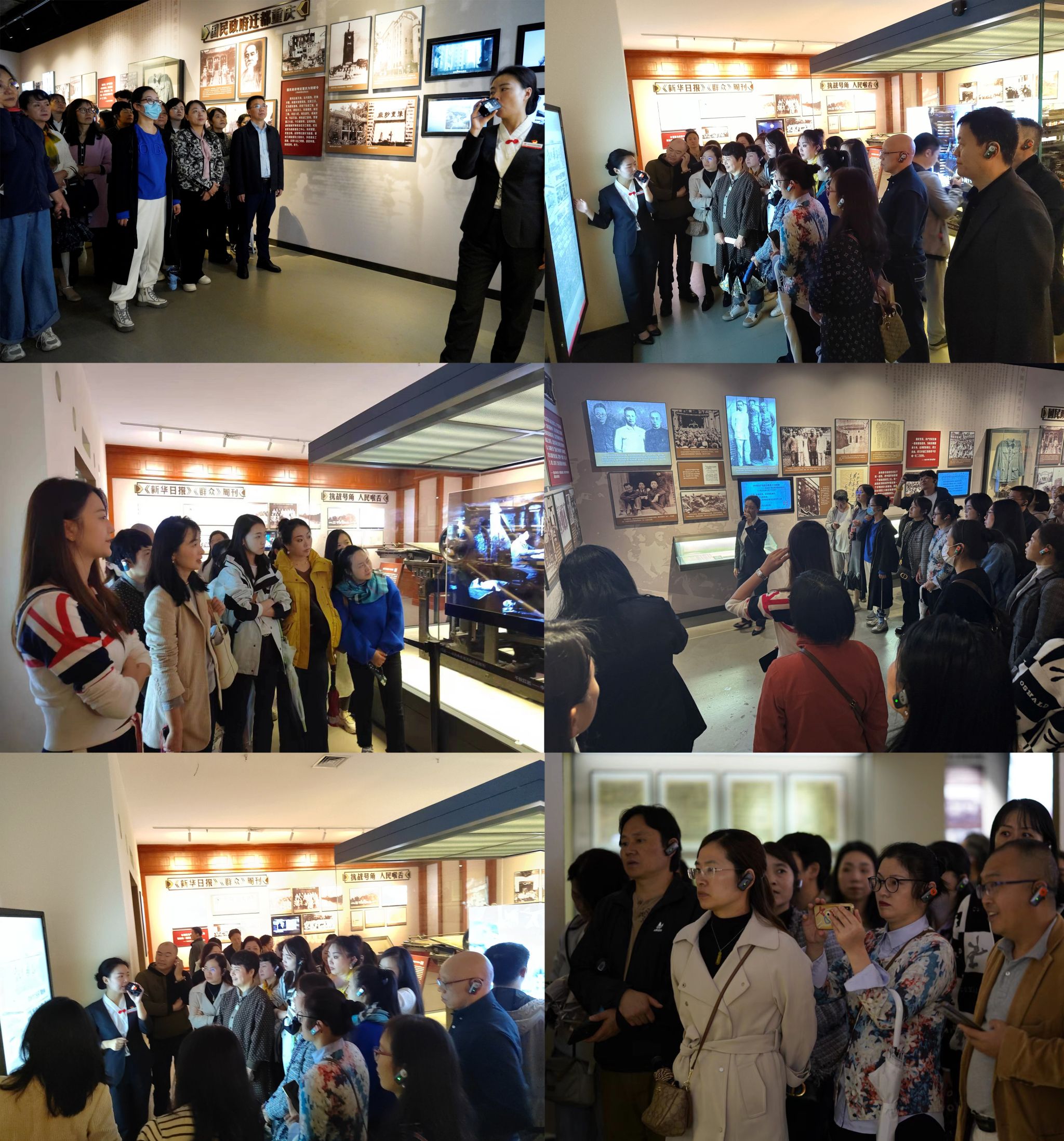 面对一幅幅承载着辉煌历史记忆的老照片、一件件珍贵的历史文物,跟随讲解员的脚步,全体参观人员逐渐“代入”中共中央南方局和八路军驻重庆办事处当年战斗、生活的历史场境,感知周恩来、董必武、叶剑英、王若飞、秦邦宪、邓颖超等老一辈革命家崇高思想境界和浩然革命正气,体会“刚柔相济,锲而不舍的政治智慧;‘出淤泥不染,同流不合污’的政治品格;以诚相待,团结多数的宽广胸怀;善处逆境,宁难不苟的英雄气概”红岩精神。