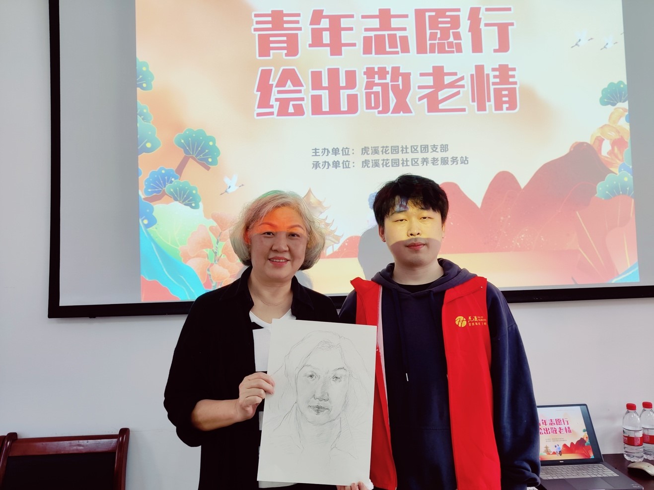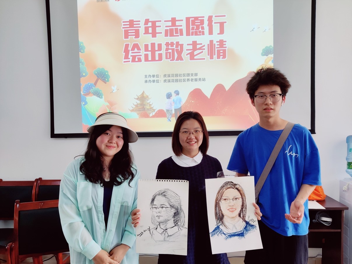 大学生志愿者们格外认真,充分发挥各自的专业实力开始构图、勾勒,时不时与老人们互动,描摹他们的一颦一笑,不到一会儿,一幅幅动人的肖像画就呈现在大家面前。这种双向奔赴的温暖无比美好!