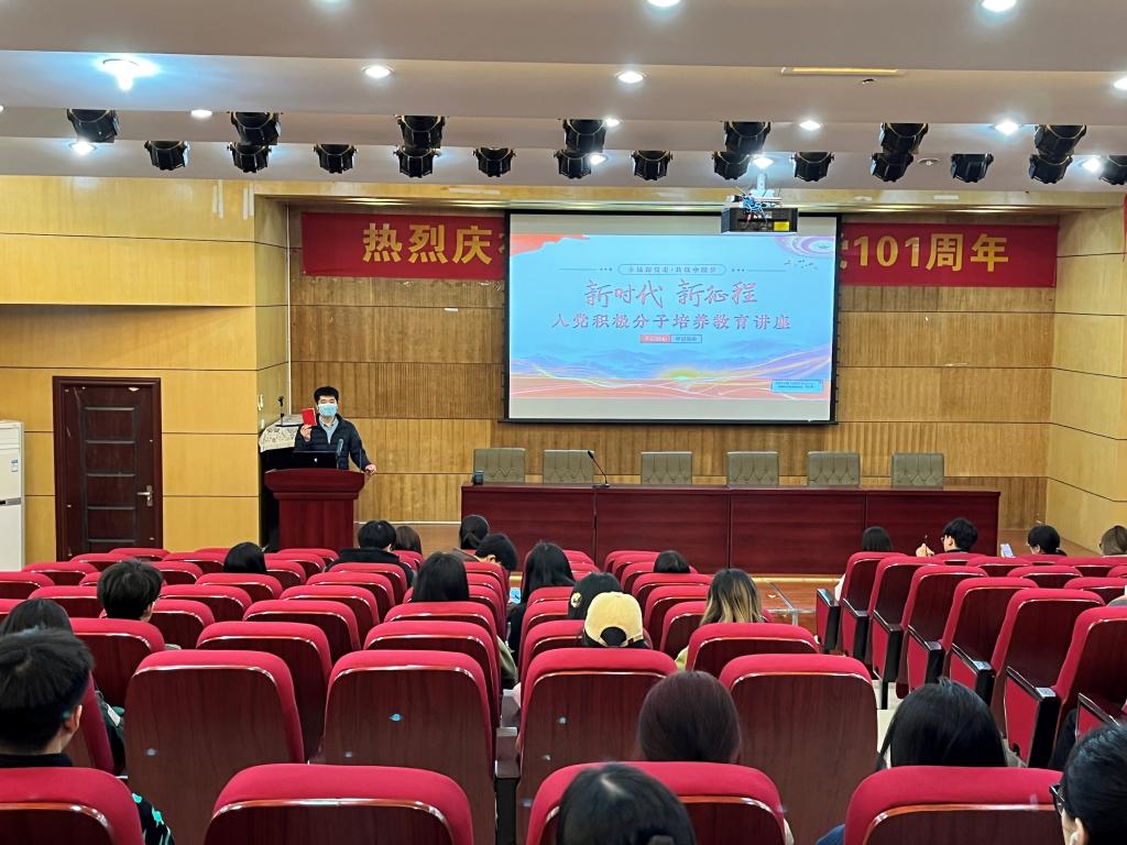 为教育引导学生端正入党动机,提高思想政治觉悟,强化理论学习,加强对党组织、党员的深刻认识,2022级本科生于3月23日13:30在学院楼报告厅举办了入党积极分子培养教育专题党课。讲座由2022级辅导员陈龙主持,兼职辅导员骆俊驰就入党基本条件、要求等作了讲解,全体2022级本科生入党积极分子参与了讲座。
