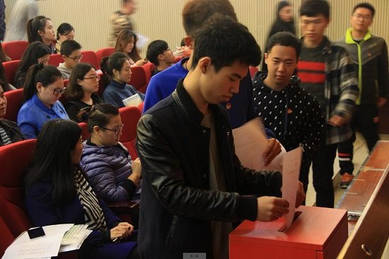 在学校及学院领导、老师进行了精彩的发言之后,会议进入换届选举这一环节。首先,由全体到场的团员代表通过了大会选举办法及监票人、计票人名单,随后正式开始选举。最后,大会选举出了王琦、李战鹏、王英糠等九名共青团调教漫画
