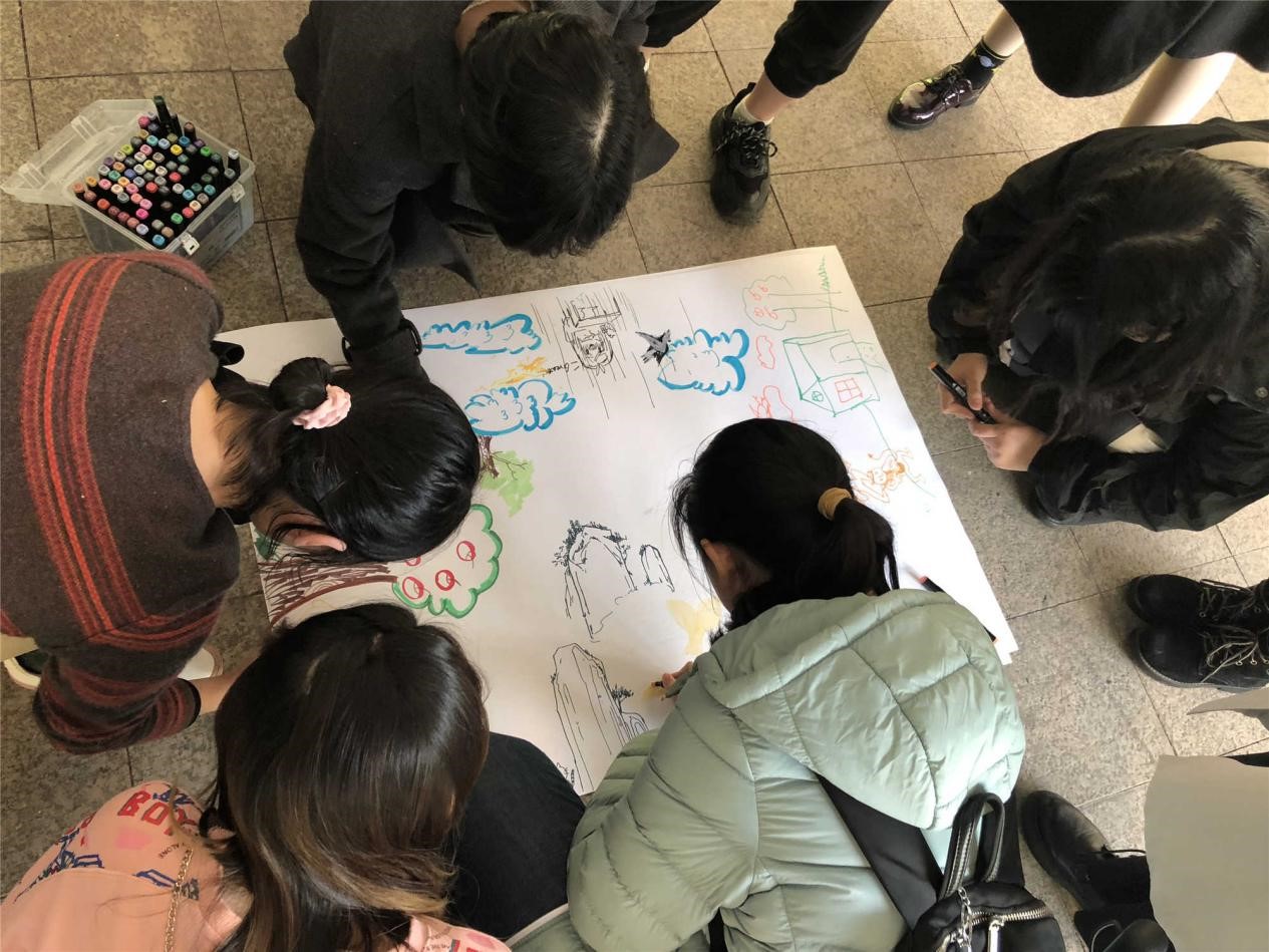 活动伊始,首先向同学讲了游戏形式,并将全体成员分为若干组,每组八人,轮流绘画,每人每次只能画一个物体。每组设立一名记录员,记录每个人每次所画物体。大家按照分组开始绘画创作,每个同学都有自己的绘画语言和心灵语言,把自己心中所思一笔一画的画出来,疏导了心理情绪、增加了互动交流。活动进行了四轮后,结束绘画,大家展开交流,每个人分享自己所画的物体初衷、想法和所要表达的意义。