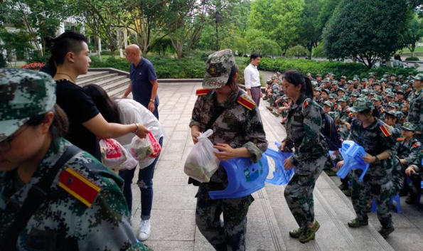 随后,学院领导班子对辛勤付出的教官们表示了感谢,感谢他们用军人的钢铁意志品质为学生们上好了大学第一课,对军训取得的成果表示欣慰。教官们迈着整齐的步伐走上前去接受了学院领导的敬意和慰问,并与学院老师们合影留念。