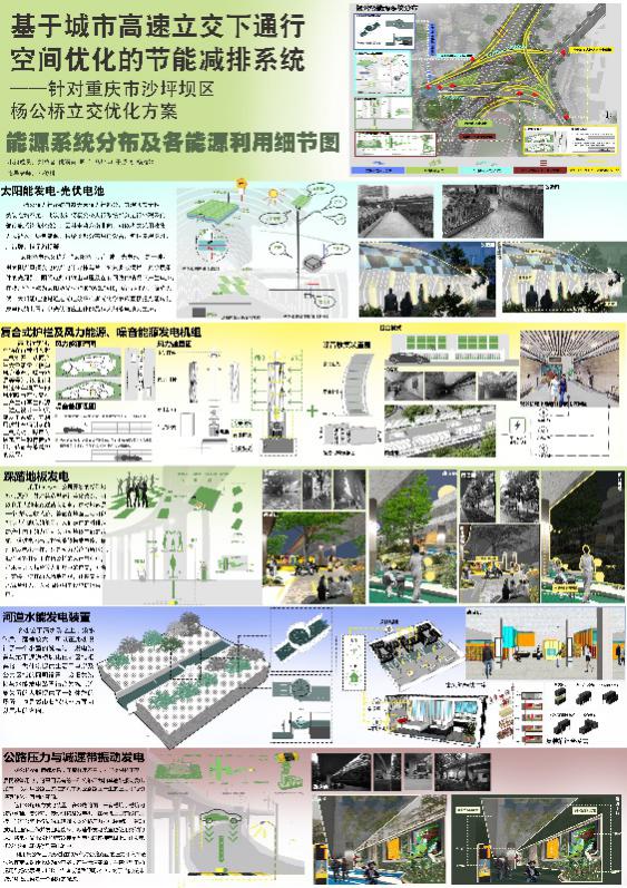 一等奖作品《基于城市高速立交下通行空间优化的节减排系统——针对重庆市沙坪坝区杨公桥立交优化方》