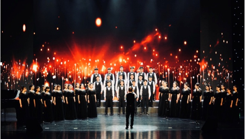 音乐系合唱团由来自音乐表演系本科各年级的48名学生组成,邓礼坤老师担任指挥、苏勤老师担任声乐指导、万健和谭思瑶老师任钢琴伴奏,精心准备和排练4个多月,最终在合唱组比赛中获得了第一名的好成绩。