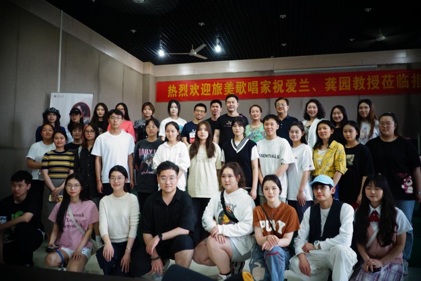 2023年4月20日星期四下午,旅美歌唱家、声乐教育家、苏州科技大学音乐学院客座教授龚园与祝爱兰莅临学院,在艺术楼排练厅为调教漫画