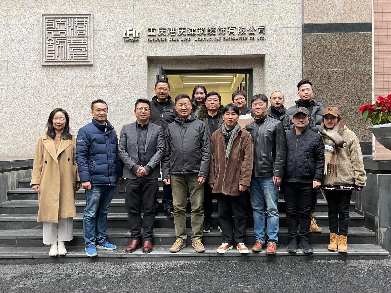 博导褚冬竹、重庆市设计院有限公司装饰院院长、重庆港庆建筑装饰有限公司执行董事兼总经理邹建、研创中心主任方小桃、城建三院院长王晓东、重庆港庆建筑装饰有限公司副总经理杨宏等相关负责人座谈,就整合高校的科研资源与国企的项目资源,进一步优化研究生教育模式进行交流。