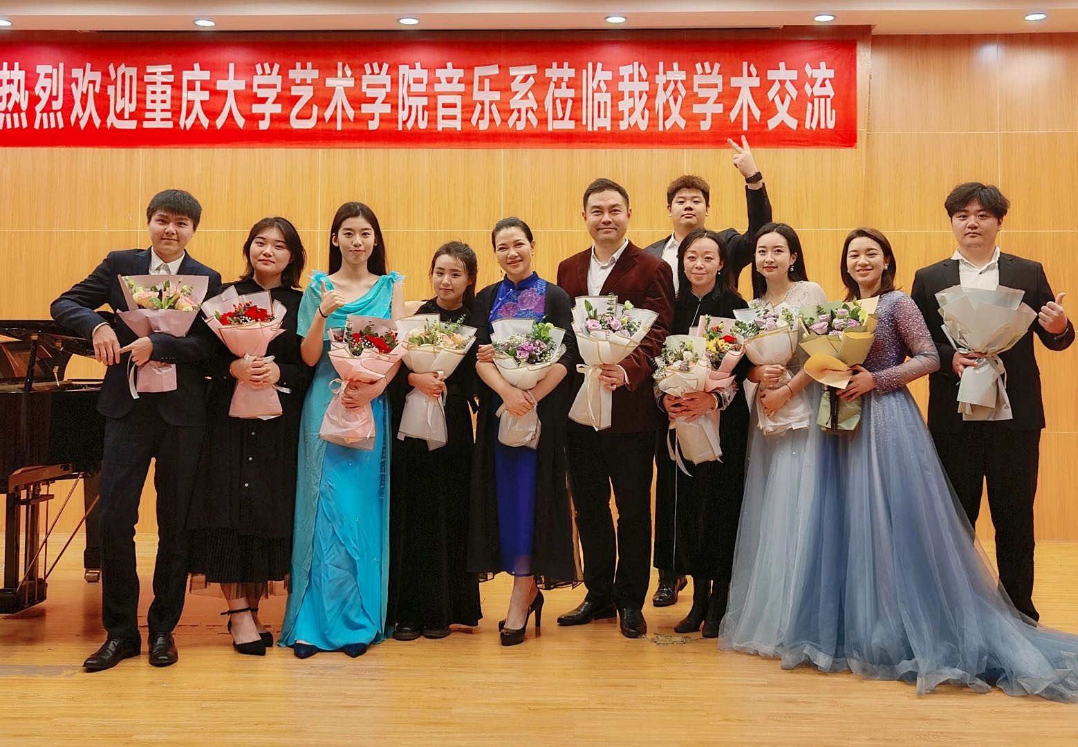 音乐系三位老师与八名学生组成。28日下午,同行师生乘高铁动车到达重庆市万州区开始了为期两日的展演交流活动。
