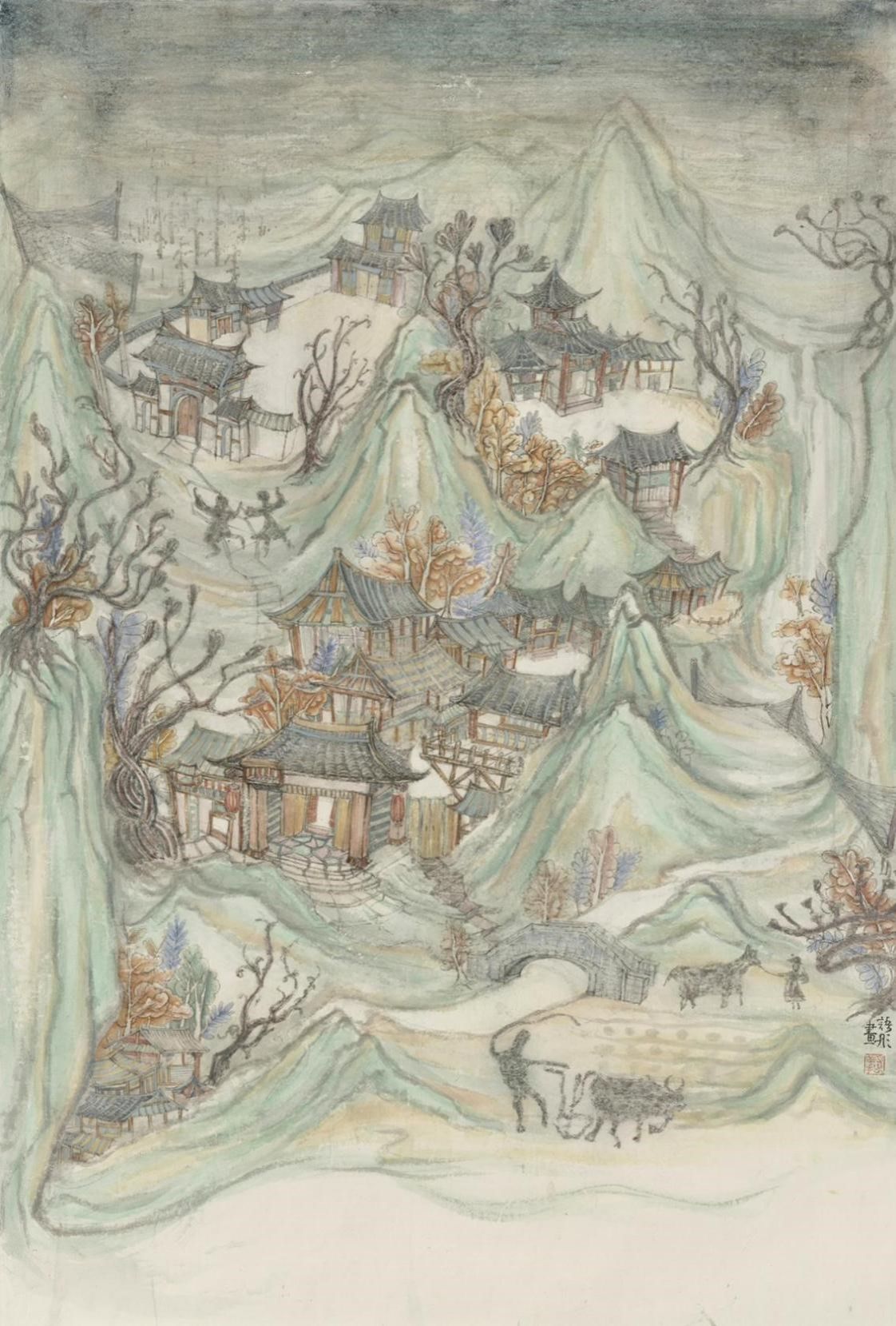 临五代董源《龙宿郊民图》局部 45.8cm×44.5cm