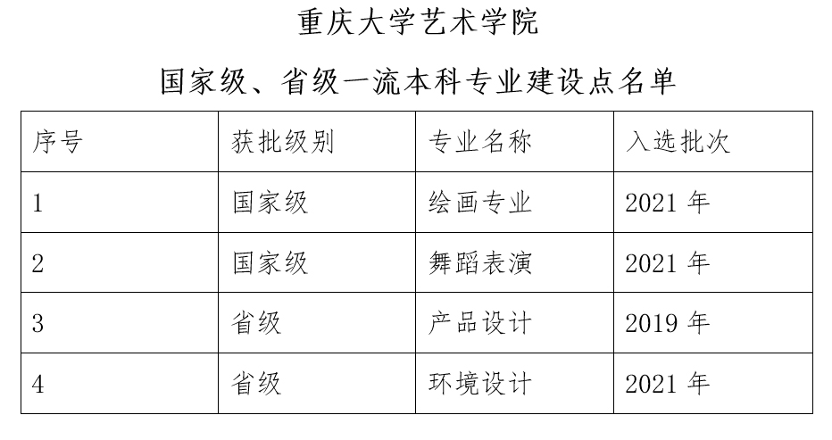 已有国家级一流本科专业建设点2个,省级一流本科专业建设点4个(含同为国家级建设点的绘画、舞蹈表演专业),取得较为优秀的成绩。