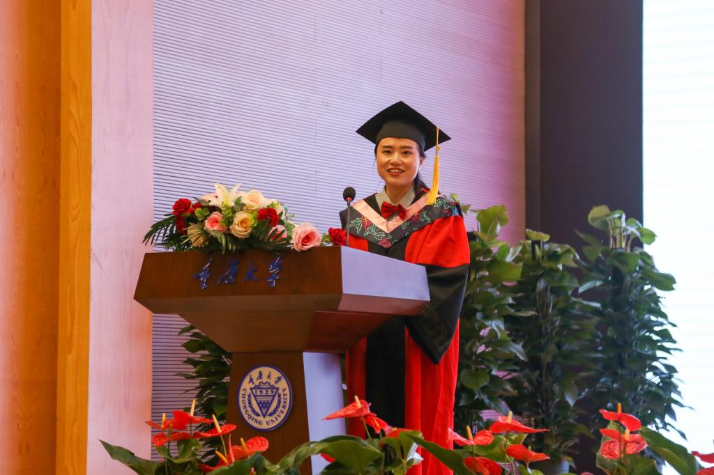 紧接着,毕业生代表、升学东南大学继续攻读博士学位的任绍阳同学进行了发言,表达了对母校的感恩与对学弟学妹的祝福。教师代表范正妍副教授发表了讲话,表达了对同学们顺利毕业的祝贺,希望同学们在未来能持续学习,保持自信,守正创新,铸就辉煌。接着,毕业生家长代表、2017级本科生律超琪父亲律波发表了讲话。律波对毕业生们表达了热烈的祝贺,向所有对学生付出的领导老师、家人朋友表达了感谢,同时,也希望毕业生们以昂扬的斗志,饱满的热情迎接新生活,走向祖国最需要的地方,走向广阔的未来,书写人生的新篇章!