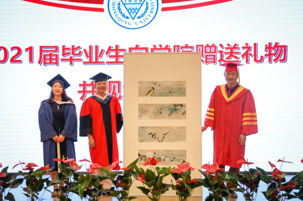 典礼在庄重的国歌声中正式开始。首先由2021届毕业生向学院赠送礼物,表达了对学院的感恩与祝福。并相继进行了毕业班各专业展示,美好的求学时光在屏幕上回放,让在场的师生不禁为之动容。