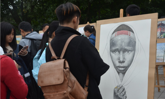 现场的观展者络绎不绝。当问及参展感的受时,资环学院2016级的秦正铭同学说道:“这些作品非常具有新意,而且都很漂亮。从这些作品中我能体会到这些画家在创造作品时所费的心思。作者们真的很棒。”