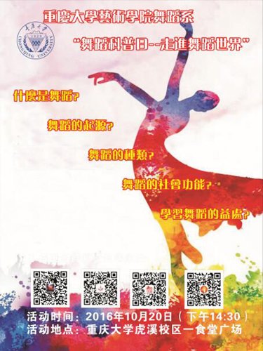 虎溪校区一食堂广场举办了“走进舞蹈世界”舞蹈科普活动。活动主题鲜明、形式多样、得到在场师生们的一致好评!