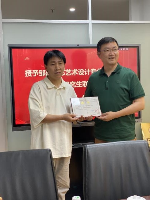 会议在积极,融洽的气氛中进行。双方围绕研究生联合培养基地建设、人才培养模式、乡村振兴发展、元宇宙与设计未来、高等教育改革创新,校企协同发展等内容进行了深入的探讨和交流。会上雒三桂为建筑装饰领域大师级专家邹建颁发了调教漫画