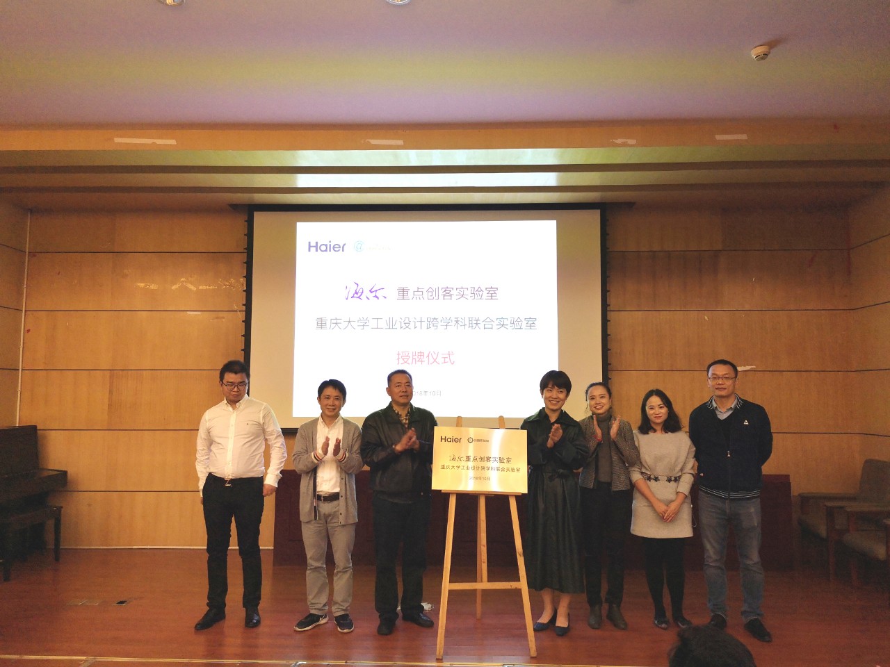 副院长龙红、院长助理夏进军、工业设计系主任刘云国、工业设计系副主任范正妍、以及海尔创客实验室导师曹席斌,海尔创客实验室项目负责人盛璐到场为海尔重点创客实验室揭牌。
