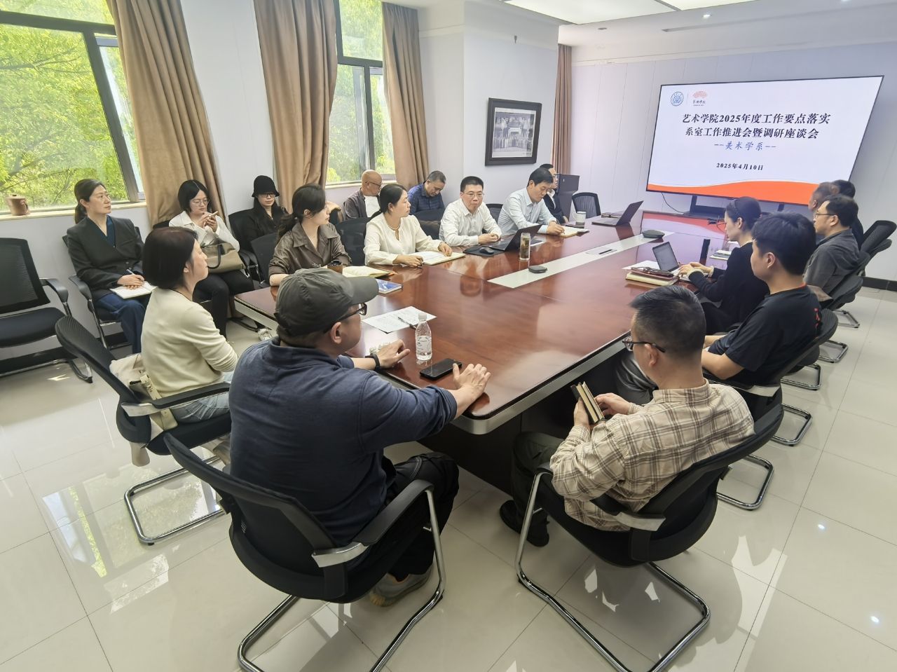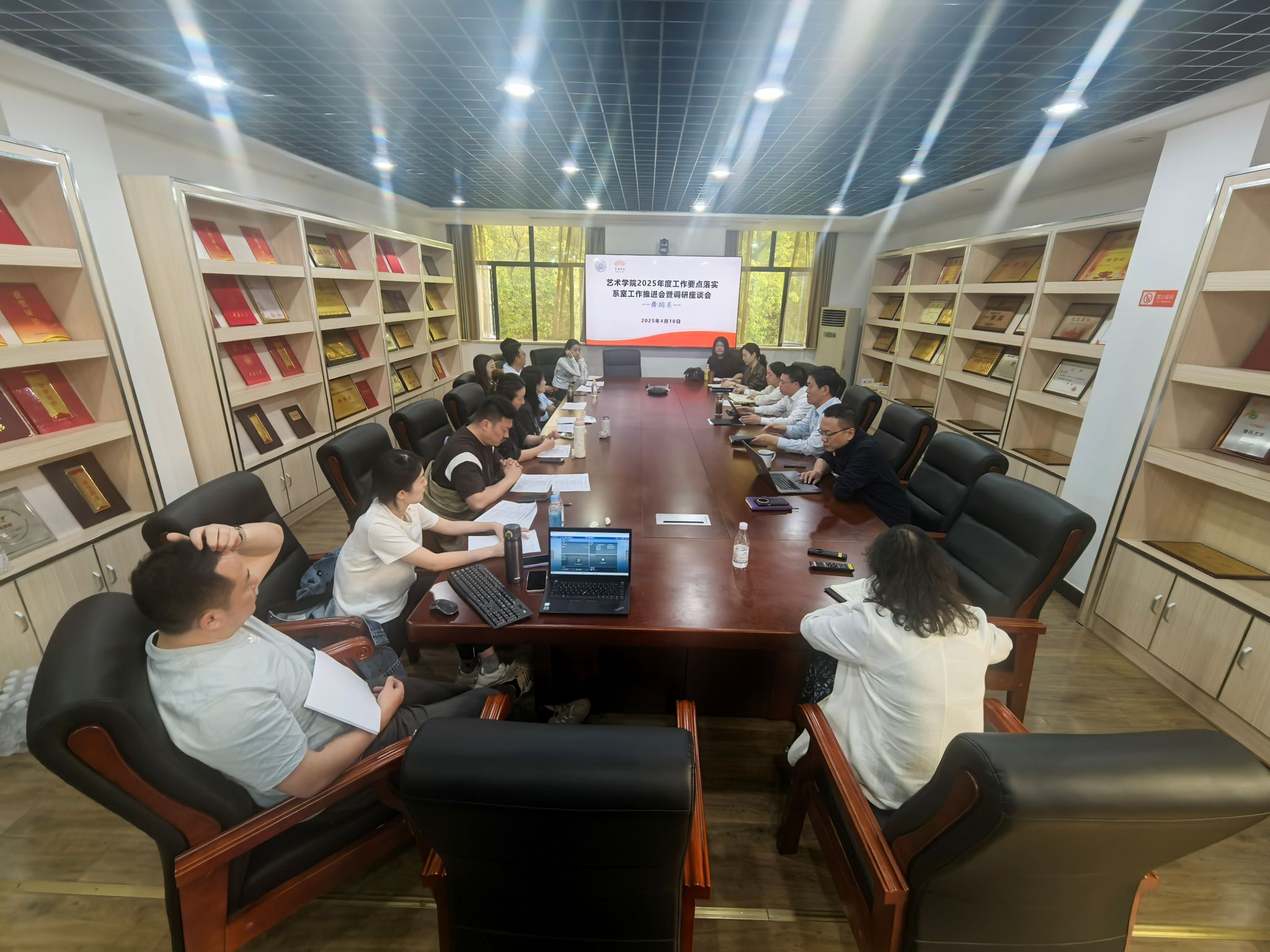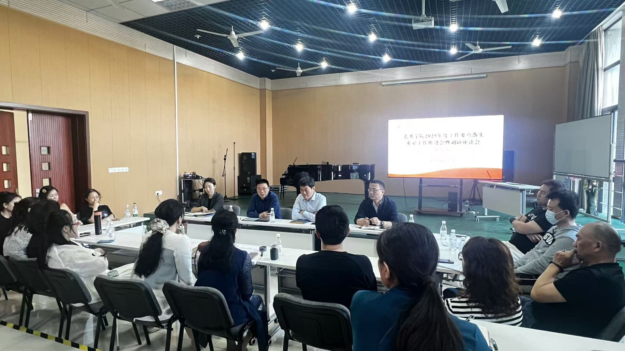 召开了2025年度工作要点落实系室工作推进会暨调研座谈会。学院党委书记蒋华林、院长张楠木、副书记王琦、副院长夏进军、副院长彭小希等学院领导分别到美术学系、舞蹈系、设计学系和音乐系与各系全体教师座谈交流,推进学院2025年重点工作落实落地,听取广大教师对学院工作的意见建议。