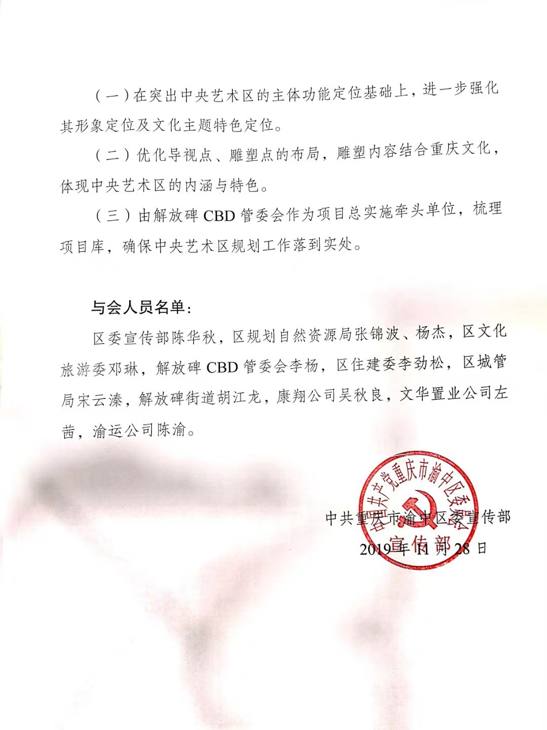 环艺系主任孙俊桥教授牵头项目组设计的“重庆市中央艺术区(Central Arts District)规划”项目在渝中区人民政府办公室301会议室顺利完成了项目的结题汇报,会议由渝中区委常委、宣传部部长张焕伦主持召开,渝中区委书记黄云林,副区长邓光怀等人参会听取了汇报。