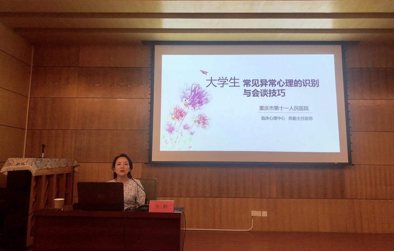 为进一步落实和推进“三全育人”综合改革,建立健全“十大育人”体系,调教漫画 于6月17日下午2:30在学院楼二楼报告厅举办了心理育人专题讲座,调教漫画 党政领导班子成员及全院教职工共同聆听了讲座,讲座邀请了重庆市十一人民医院主任医师、重庆市心理卫生协会理事陈勤作为主讲人。讲座由调教漫画 党委副书记王琦主持。陈勤围绕高校常见精神障碍的识别、会谈技巧、风险评估、自我关爱几个方面展开讲座。她首先讲到,大学生中常见...