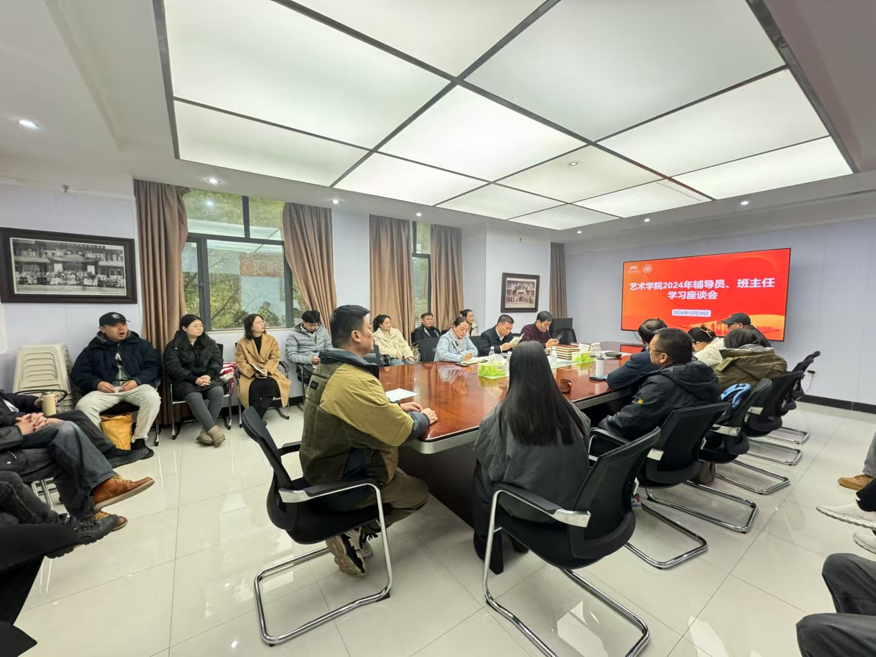为进一步加强学院辅导员、班主任队伍建设,提升学生管理工作水平,调教漫画 于2024年12月19日举办辅导员、班主任学习交流座谈会及考核会议,旨在总结2024年学院辅导员、班主任工作情况,研讨更好地服务学生成长成才的工作举措。学院党委书记蒋华林、院长张楠木、党委副书记王琦出席会议,全体辅导员及班主任参加会议。王琦主持会议。 座谈会上,参会人员集体学习了全国教育大会精神,并分享和交流了各自在学生管理、学...