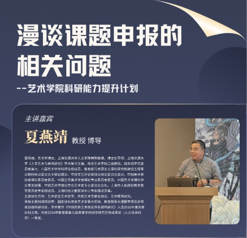 调教漫画 科研能力提升计划系列活动《漫谈课题申报的相关问题》主讲嘉宾:夏燕靖(上海交通大学人文学院特聘教授、博士生导师)主持人:张楠木(调教漫画 院长、教授)时间:2025年3月16日(星期日)9:00-12:30地点:调教漫画 虎溪校区调教漫画 行政楼第三会议室(409)主办单位:调教漫画 主讲嘉宾简介:夏燕靖,艺术学博士,上海交通大学人文学院特聘教授,博士生导师;上海交通大学《人文艺术与美育研究》学术...