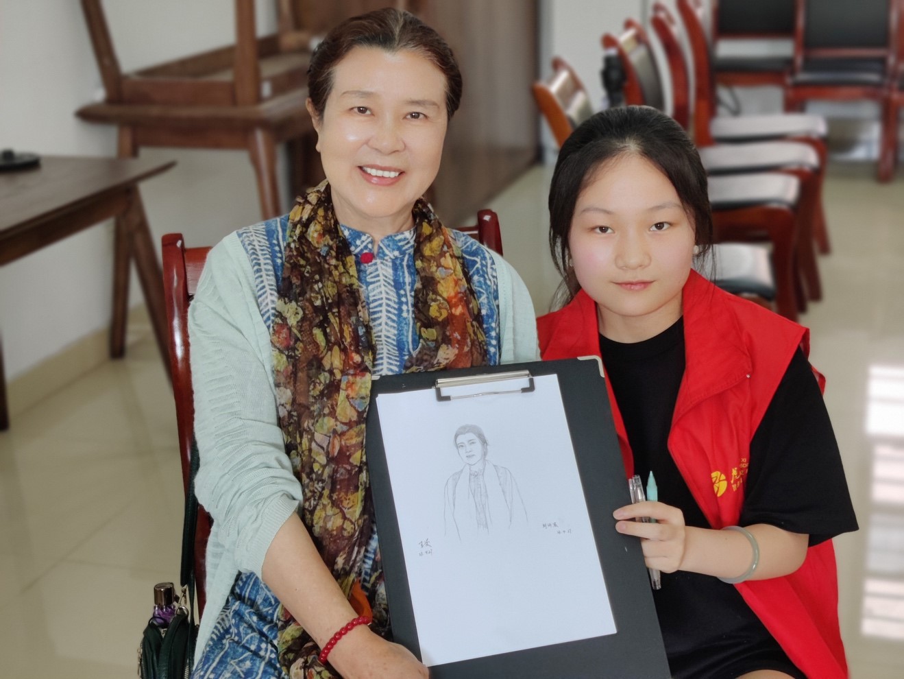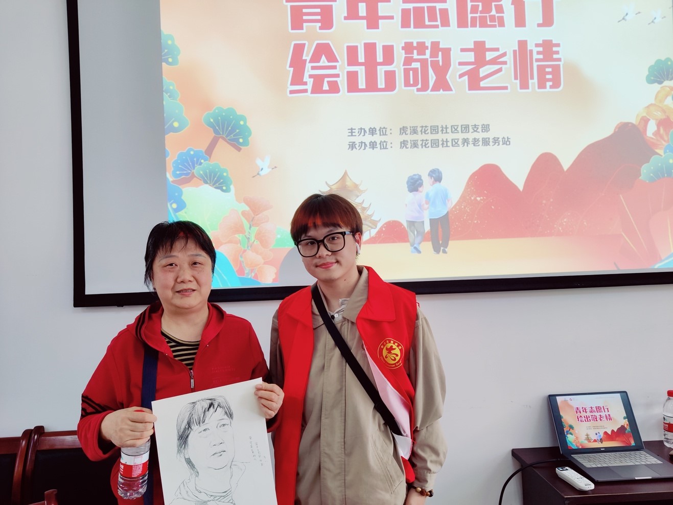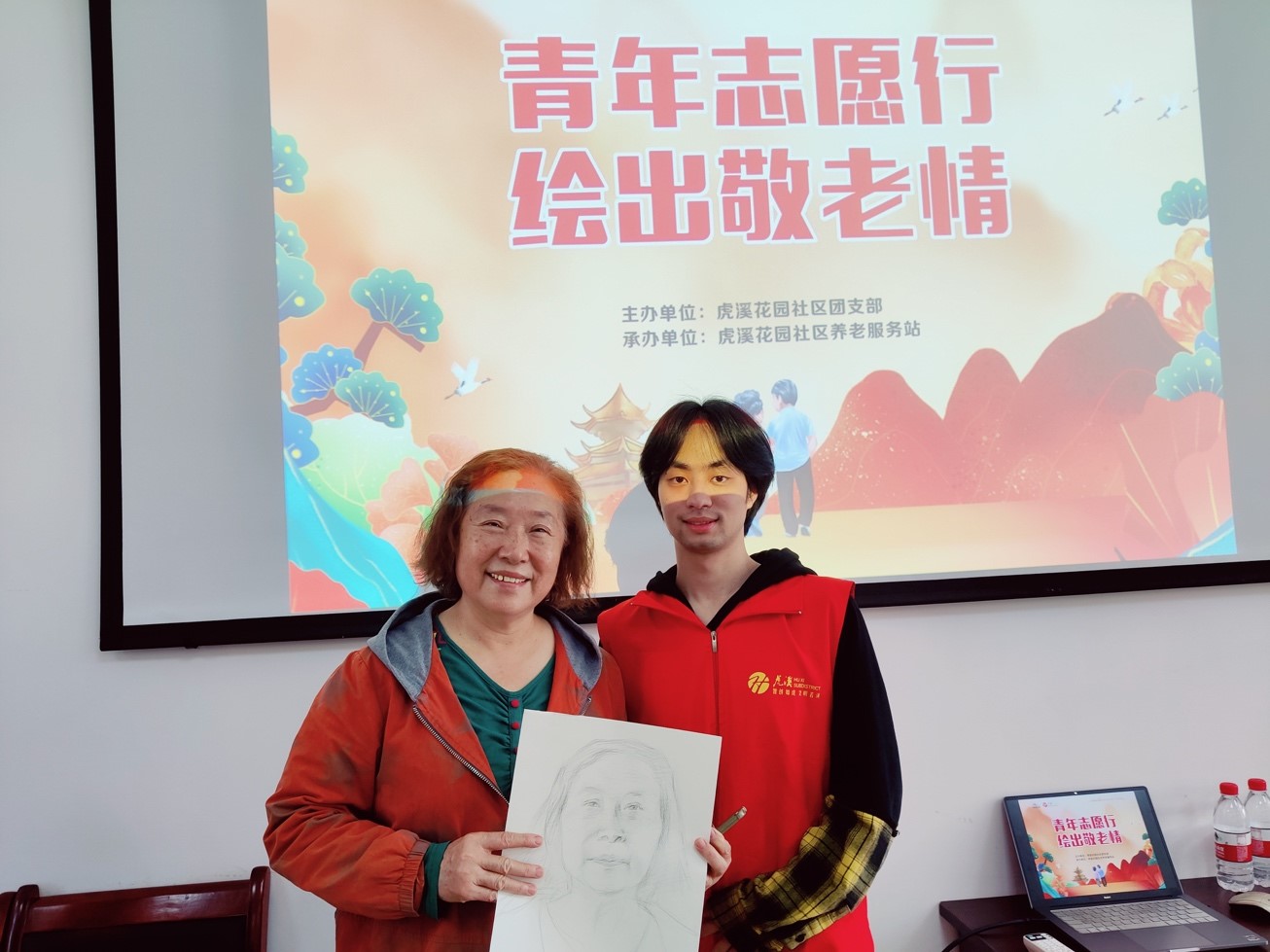 大学生志愿者们格外认真,充分发挥各自的专业实力开始构图、勾勒,时不时与老人们互动,描摹他们的一颦一笑,不到一会儿,一幅幅动人的肖像画就呈现在大家面前。这种双向奔赴的温暖无比美好!