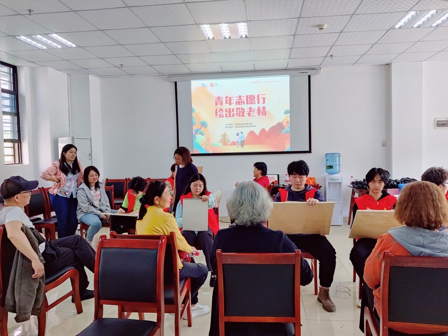 为深入学习贯彻习近平总书记在庆祝中国共产主义青年团成立100周年大会上的重要讲话精神,引导广大青年学生积极服务文明城市创建。2023年4月27日,以“青年志愿行,绘出敬老情”为主题的“五四青年节”志愿服务活动在重庆市高新区虎溪花园社区拉开序幕。美术学系的8名研究生和本科生志愿者:欧阳博、赵瑞琪、古富成、王瑞祥、刘许宸、陈熙禹、唐安利、王林,在美术学系主任肖力的组织下,走进虎溪花园社区,为辖区内60岁以上的老人奉献了一堂生动而精彩 “美育课”,同时也引导和帮助调教漫画