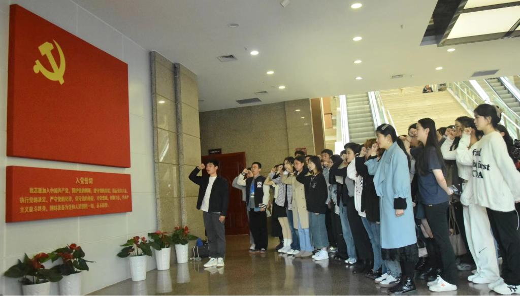 抵达纪念馆后,陈龙首先带领党员们重温了入党誓词。在庄严肃穆的纪念馆里,大家深刻领略到了老一辈共产党员们“随时准备为党和人民牺牲一切”政治宣言。