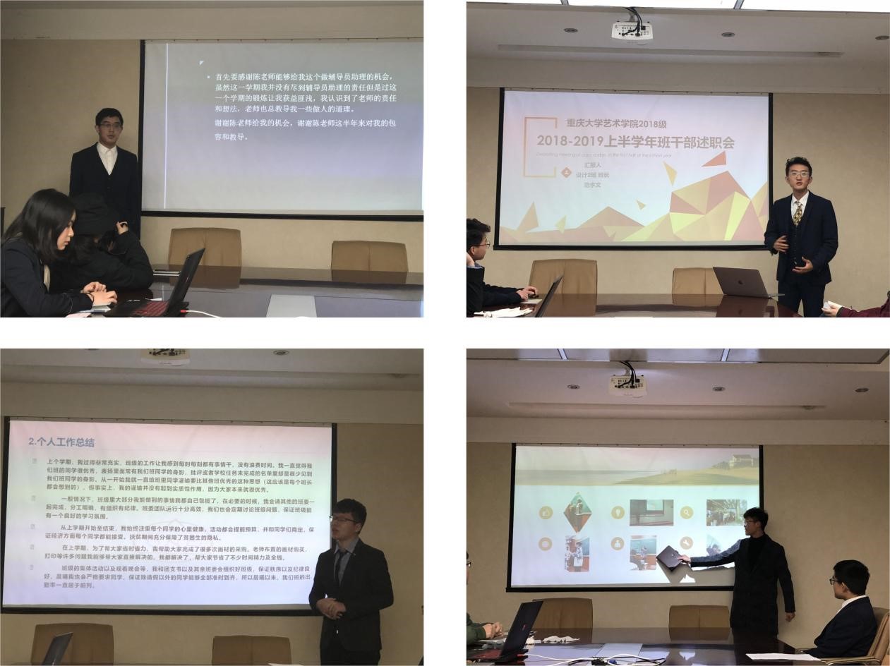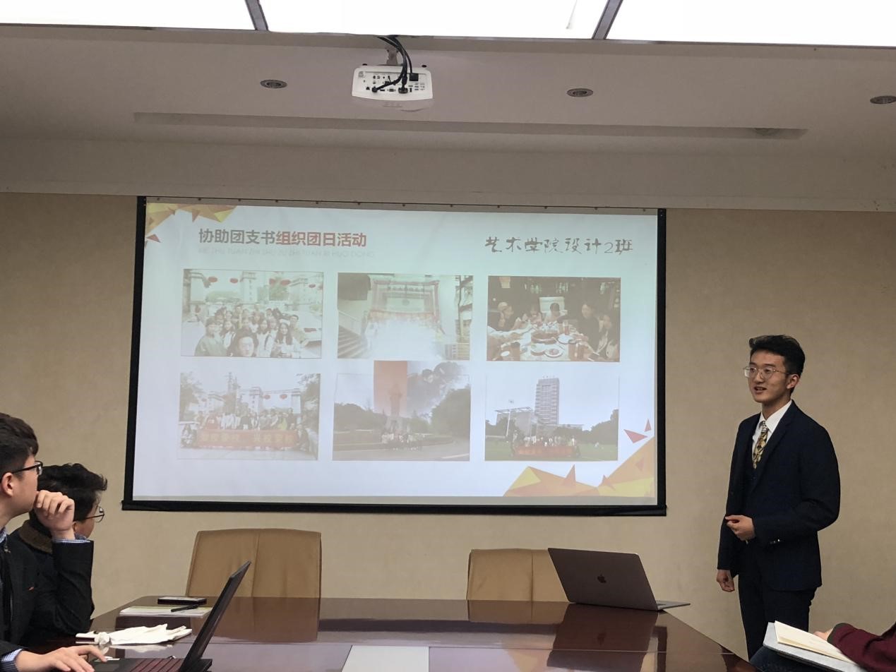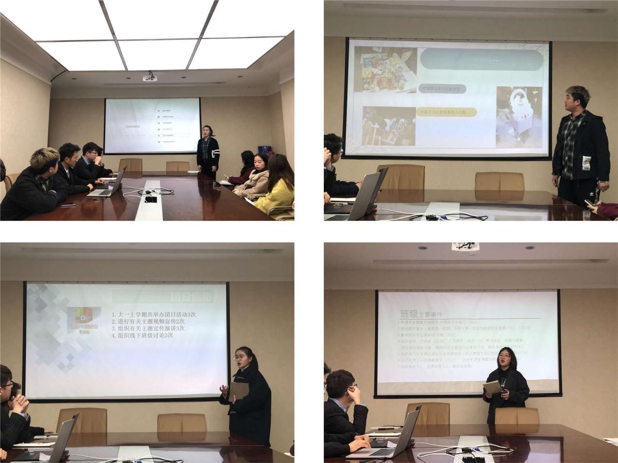 大家根据自己上学期的工作情况,以PPT形式展开交流。学生助管于淼淼的精彩开场,内容丰富,图文并茂,为交流会做了一个很好的开头,接下来每位班委的交流内容各有特色。设计学类2班班长范李文就本班开展的各项特色活动、学习氛围、班级凝聚力、参展参赛等情况向大家做了展示,赢得了一片掌声。设计学类7班团支书李一凡扎实开展的各项特色团日活动,为大家提供新思路新方法。交流会上不时响起掌声,大家认真聆听,仔细记录,互相交流,现场气氛十分热烈。