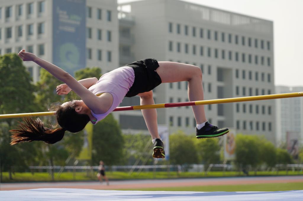 学院2019级本科学生何嘉儿在4月15日上午进行的校运动会本科女子组跳高决赛中,以146CM的成绩夺冠,并刷新校运会记录。