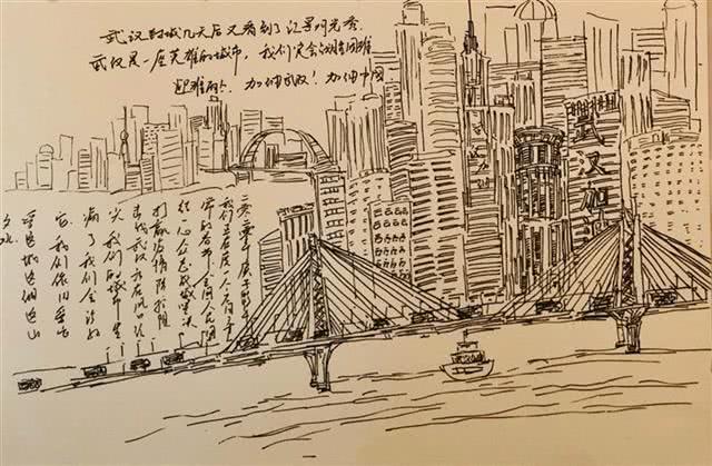 “有全国的支援和帮助,我的武汉一定会好起来,到时候欢迎大家来做客。”王杰立在画中这样写到。