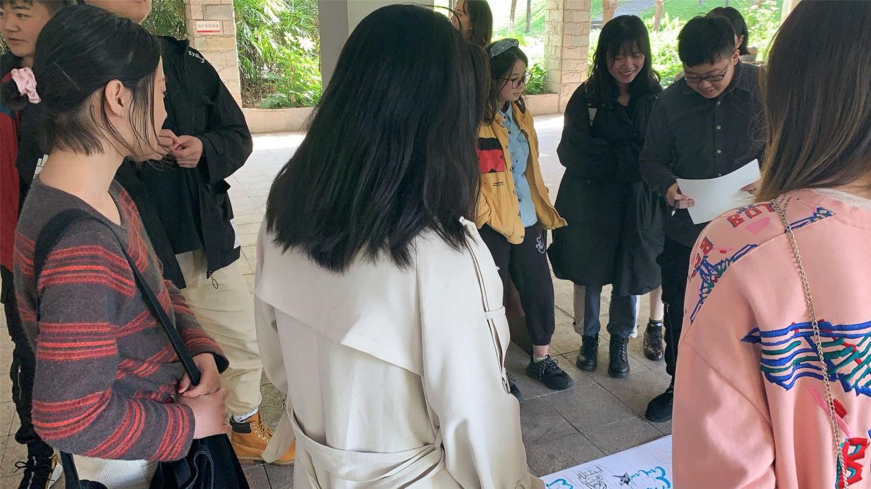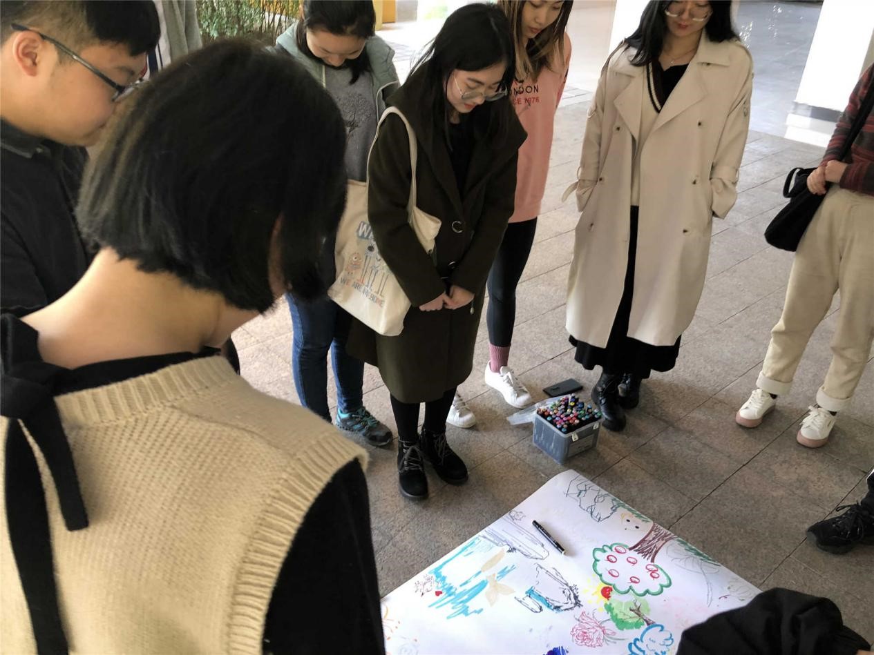 活动伊始,首先向同学讲了游戏形式,并将全体成员分为若干组,每组八人,轮流绘画,每人每次只能画一个物体。每组设立一名记录员,记录每个人每次所画物体。大家按照分组开始绘画创作,每个同学都有自己的绘画语言和心灵语言,把自己心中所思一笔一画的画出来,疏导了心理情绪、增加了互动交流。活动进行了四轮后,结束绘画,大家展开交流,每个人分享自己所画的物体初衷、想法和所要表达的意义。