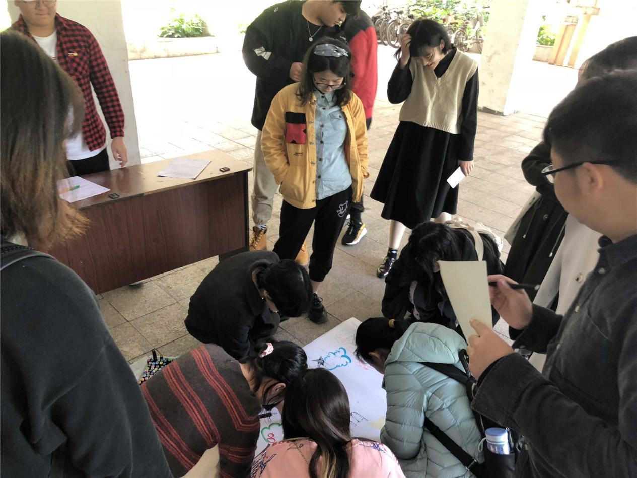 与心灵协会携手于11月14日下午,在学院楼架空层举办“心灵笔迹”系列团体心理辅导活动,活动以绘画的形式展开,活动吸引了大量学院学生参与。