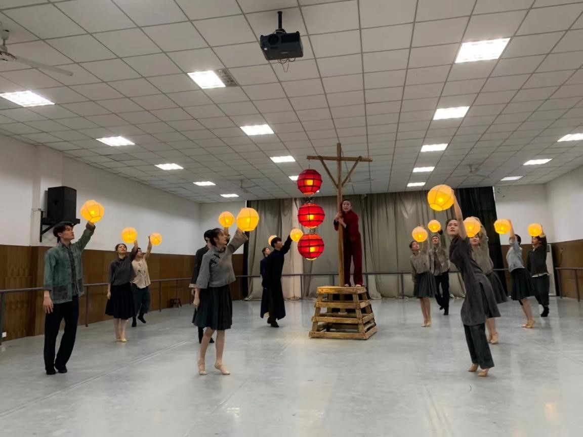 今年年初,我系老师和参赛同学们就已经进入到该作品的最终排练环节。为保证参与同学日常课程的进行,该作品从训练到走上舞台绽放光芒,全部利用编导老师和参赛同学们的课余时间及假期进行排练。