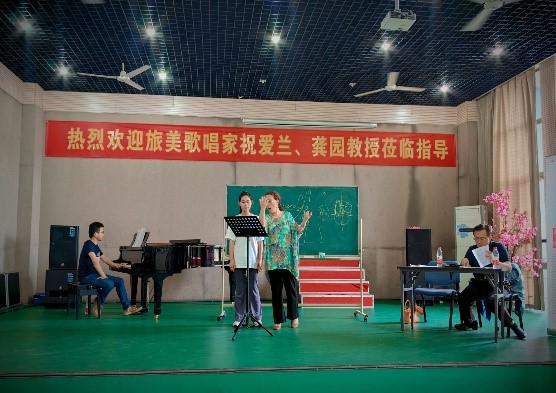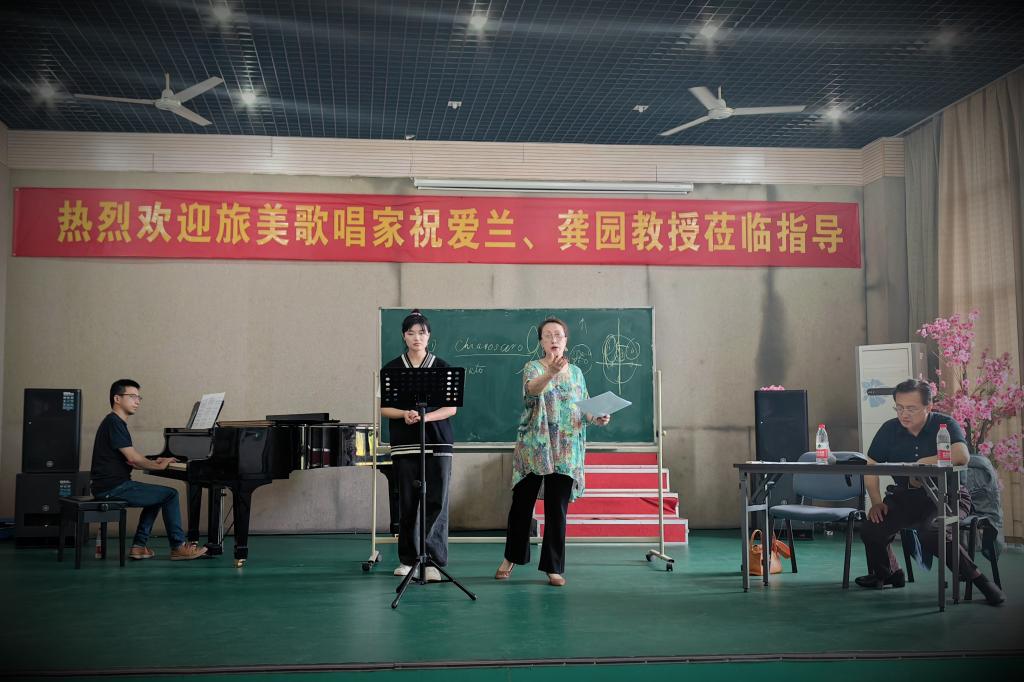 2023年4月20日星期四下午,旅美歌唱家、声乐教育家、苏州科技大学音乐学院客座教授龚园与祝爱兰莅临学院,在艺术楼排练厅为调教漫画