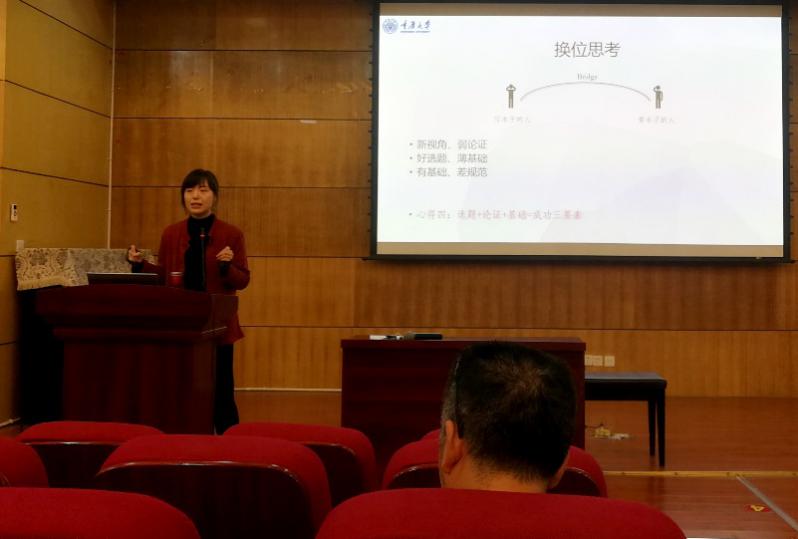首先,彭小希副教授向与会的老师们分享了自己在申报国家社科基金青年艺术项目《西南地区青铜器乐舞图像研究》时的心得和经验。在选题、书写、布局合理、研究评述、换位思考等方面的基础分享交流外,彭副教授用独特的“需求侧原则”和“供给侧原则”来划分课题选题与自身研究基础,“钻石结构”的写作模型也令人耳目一新;并强调要坚定信念,勇于尝试,而“好的选题+论证+基础”才能得到成功。