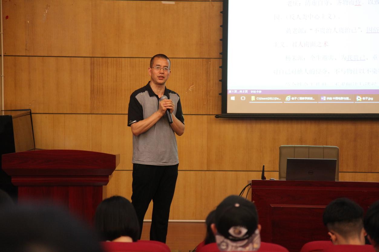 第一部分:道家发展流变。为了让同学们更容易理解,杨教授从国产电影发展现状引入,运用大量的史实案例,详细的剖析了儒家、道家、法家的历史发展流变关系,老子、列子、庄子等道家代表人物的思想观点,黄老派“因俗简礼”、“除衍存简”的极简主义主张、杨朱派的“为我贵己”主张,歧路亡羊、禅宗、道家和当代新道家等内容。