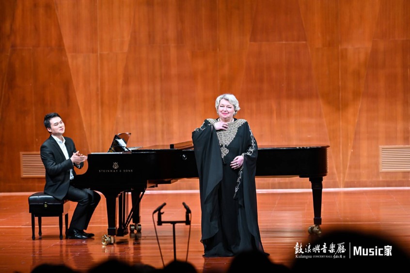 音乐系副主任喻思言作为本次音乐会总策划及独唱艺术家,与俄罗斯人民艺术家Olga Kondina同台献唱。Olga Kondina是俄罗斯圣彼得堡国立音乐学院教授、俄罗斯马林斯基剧院声乐艺术总监、独唱演员,她曾唱遍欧美各大顶级剧院和音乐厅,深受群众喜爱。