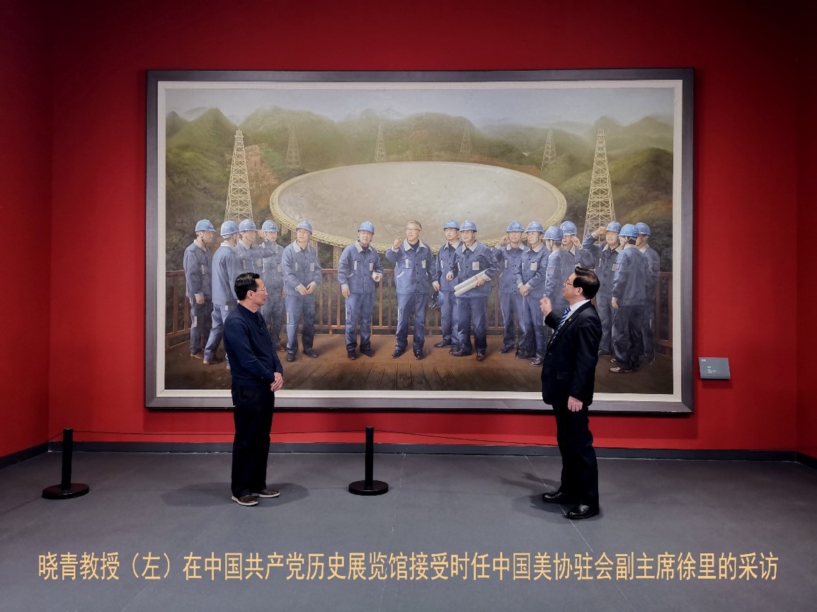 晓青创作的大型油画作品《天眼》获“纪念建党100周年国家重大历史题材大型美术创作工程”立项。《天眼》是以“人民科学家”南仁东事迹为创作主题,历时两年的艰辛创作,于2021年6月在中国共产党历史展览馆展出,并被收藏和永久性陈列。