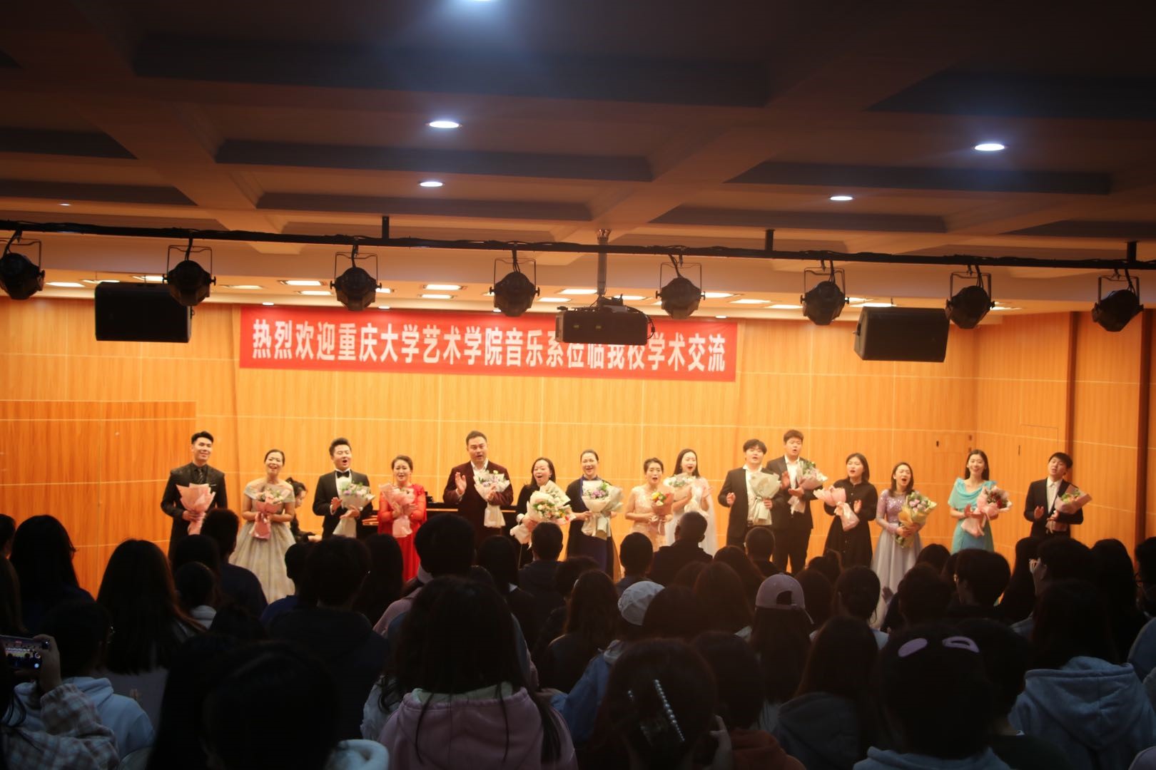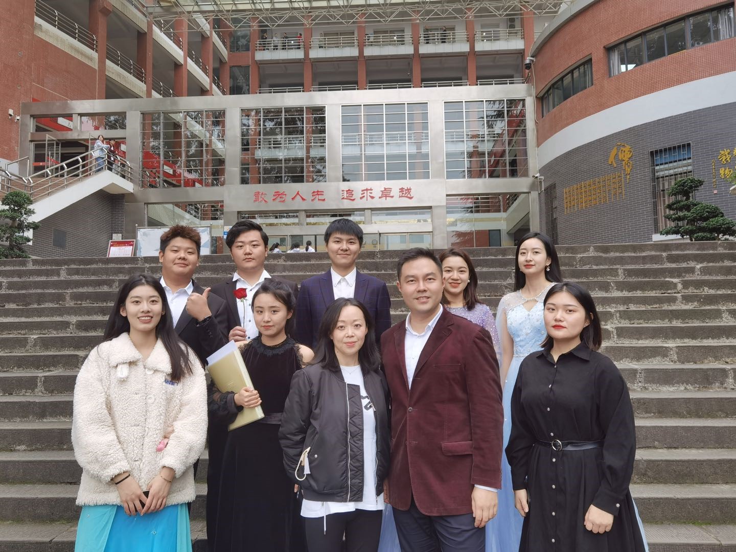 音乐系三位老师与八名学生组成。28日下午,同行师生乘高铁动车到达重庆市万州区开始了为期两日的展演交流活动。