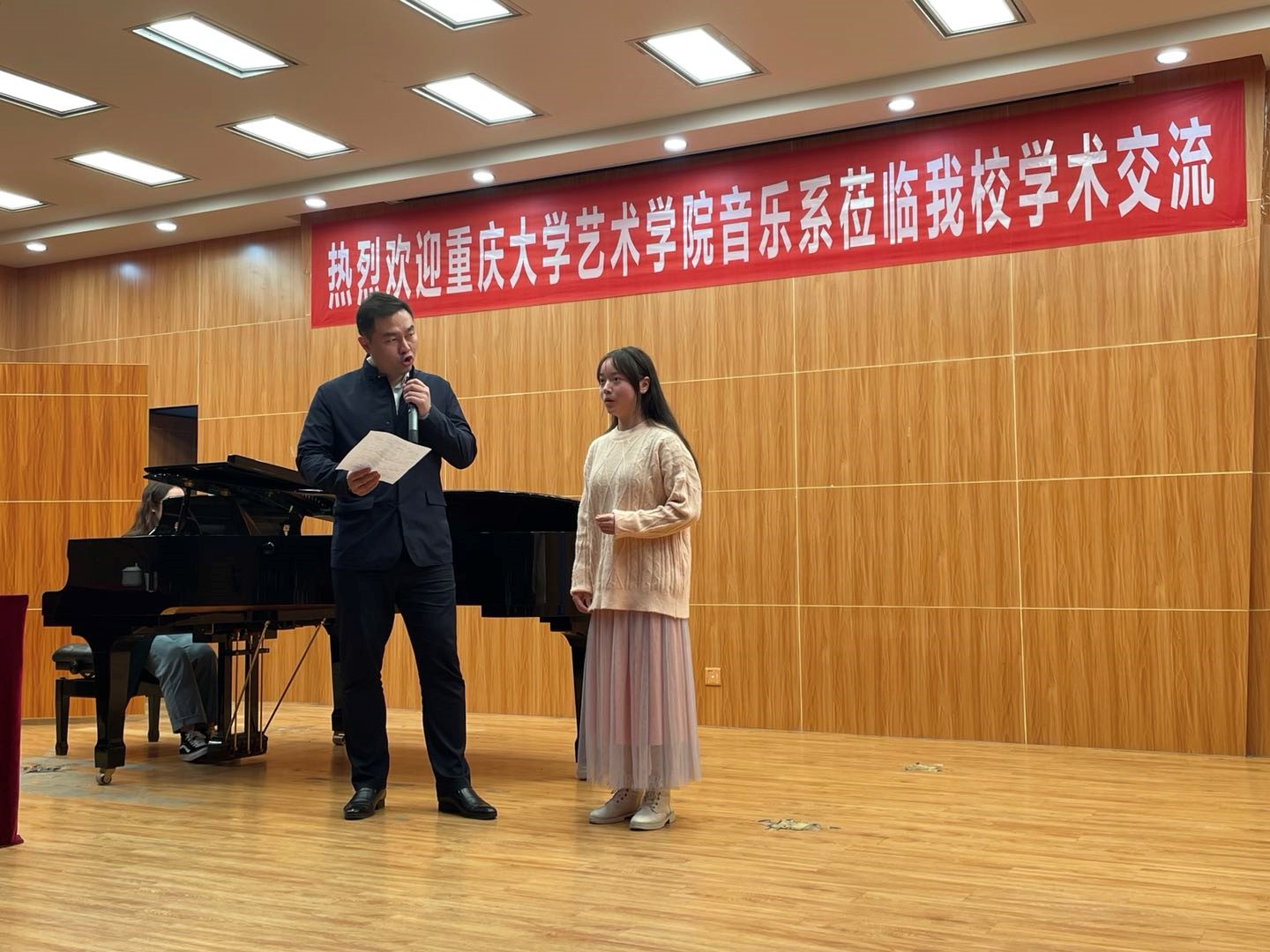 10月29日上午,我校师生来到重庆幼儿师范高等专科学校,开始了第二天的交流活动。上午我校音乐系主任肖玲副教授与副系主任喻思言老师分别对幼儿师专的学生们进行了声乐理论与演唱实践的指导讲座。