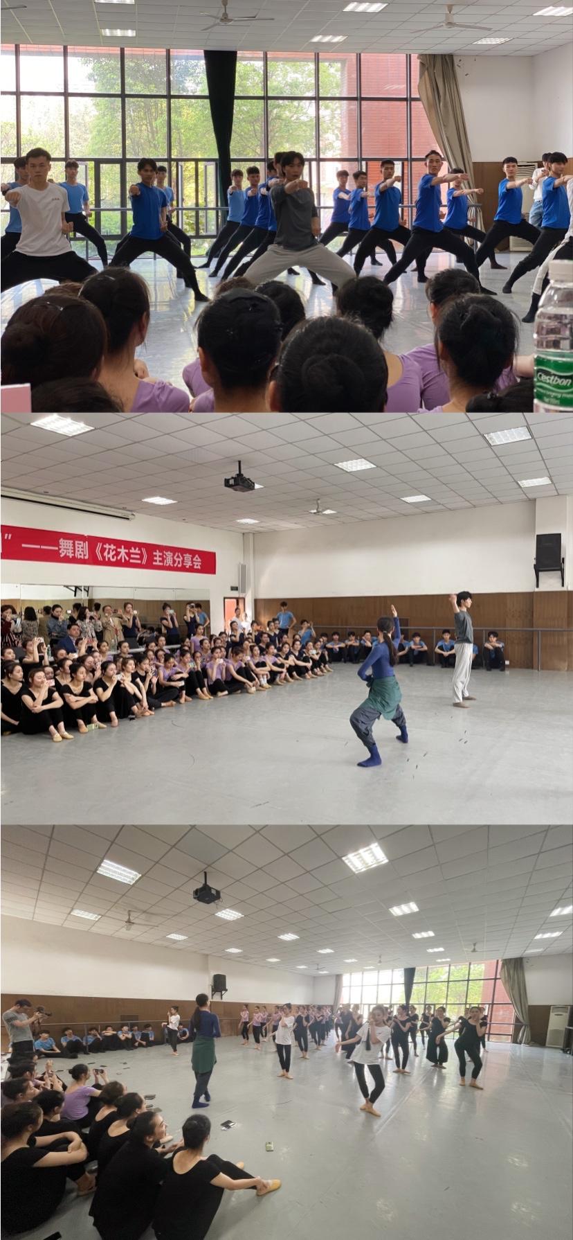 舞剧《花木兰》由宁波市歌舞剧院倾力打造,青年舞蹈家郝若琦、夏天等人担纲主演,该剧于2018年荣获第十一届中国舞蹈“荷花奖”舞剧奖。今天,宁波市歌舞剧院严肖平院长、张晓妍副院长携青年舞蹈家郝若琦、夏天、王钰等13名主要演员与重庆大剧院多位活动负责人一同来到了舞蹈系,与近百名师生分享交流了舞剧《花木兰》的创作及演出过程。