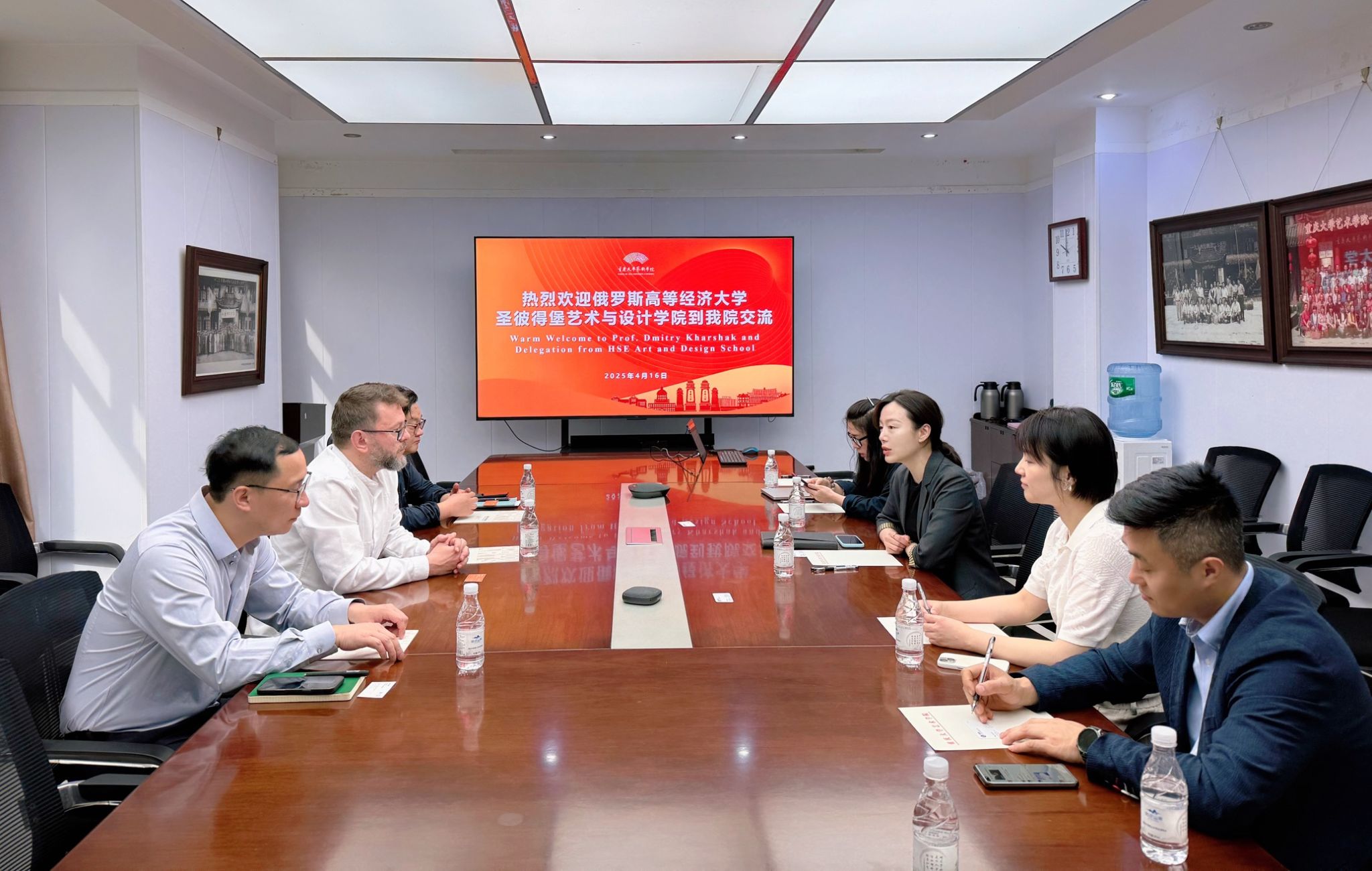 座谈会上,彭小希介绍了学院的发展历史、学科建设和国际交流等情况,熊喜秋重点介绍了视觉传达设计专业开设的特色课程项目。德米特里介绍了HSE艺术与设计学院的办学情况,并分享了研发的创新数字教学平台,该平台为师生提供个人主页空间,支持项目在线提交、远程评审及跨地域协作。双方就合作举办国际设计比赛达成初步共识,计划以赛事为起点,逐步推进师生互访、联合课程、教学协作、学术交流等深度合作,并加快推进合作备忘录(MOU)的签署工作。