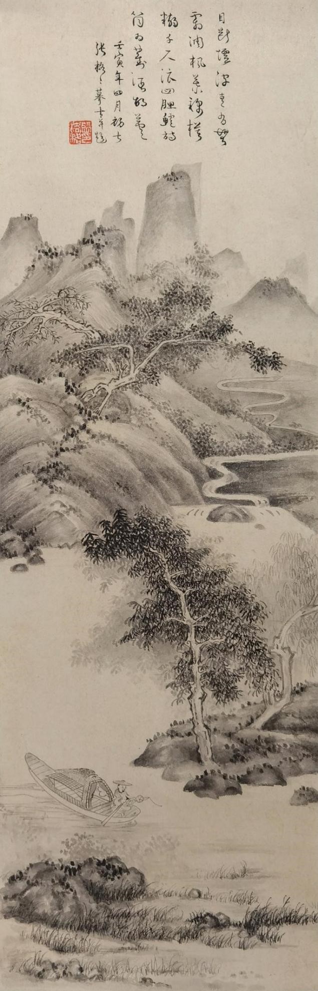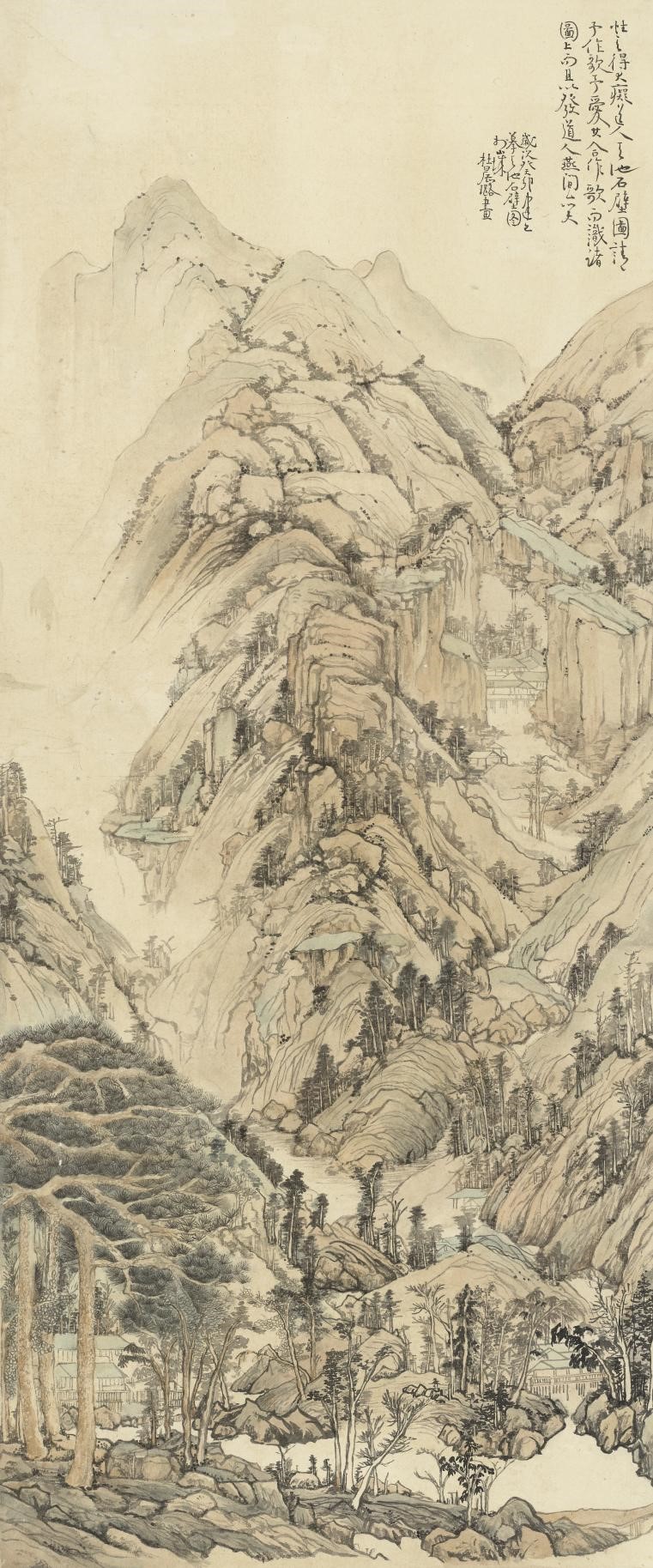 临清代龚贤《水墨山水图》110cm×40.3cm