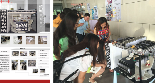 展出的过程中,众多其他专业的学生提出了一些较为实际的建议,也为设计者留下了他们的宝贵意见,使本专业的同学更加了解用户的想法,而不仅仅只局限在自身的设计构想中,使得大家对自身的设计有一个深刻的反思,得到肯定的同时也认识到了不足,为今后的设计积累了很多实战经验。