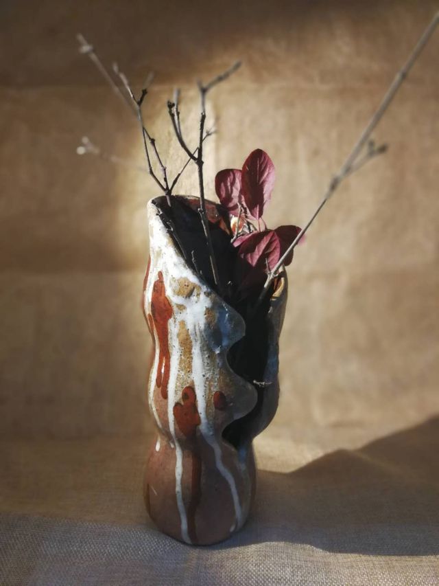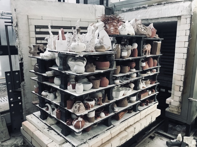 在课程过程中,我们遇到了各种各样的难题:因陶瓷的脆性导致作品总是断裂、干湿不同导致连接处在烧制时需要靠釉的粘性相粘接、拉坯时陶土过湿作品会突然的坍塌、烧制过程中釉滴落下来粘在铁板上……这些难题成为了那些完美陶艺作品的绊脚石,但残缺、不完美的过程正是是我们要去经历的。正如那句古言:“不经一番寒彻骨,怎得梅花扑鼻香”。只有我们克服了这些难题,才有了5月3号的陶瓷展览。