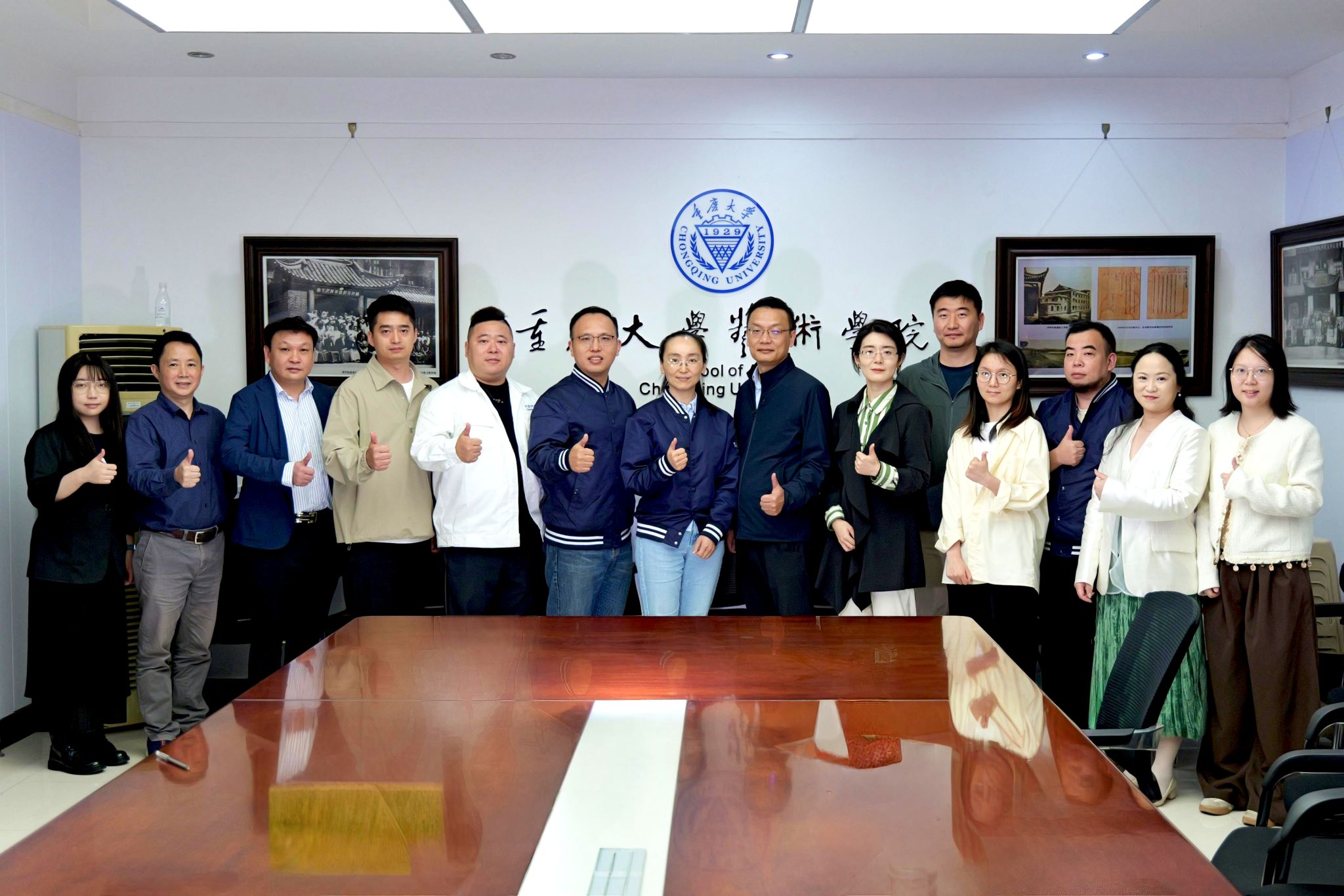 邓鑫一行首先实地参观了文创设计工作室、智能设计工作室、人因实验室等特色教学、科研场所。刘云国通过介绍学生设计作品、3D模型等,展示了学院师生在汽车造型设计、CMF、HMI交互设计、用户体验等方面的教学成果。长安汽车全球设计中心的专家对学院将艺术美学与工程技术融合的实践模式表示赞赏,并就设计流程优化、用户需求分析等话题与师生展开现场讨论。