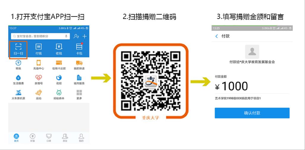 通过下列任意方式捐赠,均请在备注或附言中填写您的学院、年级、姓名及基金项目(如有字数限制可填写项目编号),便于我们对捐赠信息进行登记造册,谢谢!